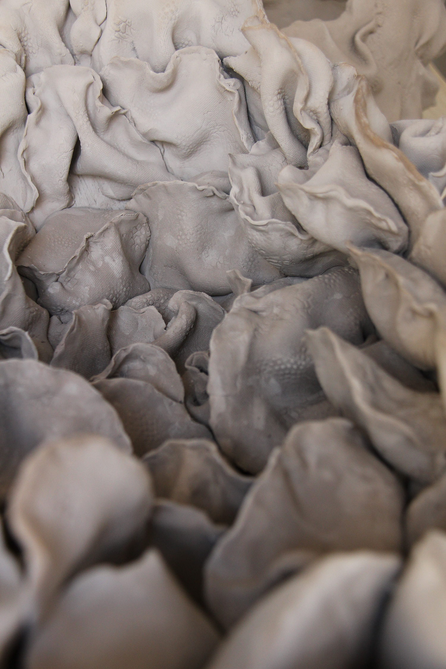 This body of work traces love’s topography through the medium of clay—its surface a terrain of touch, its fractures mapping where tenderness meets tension. Like skin, the material remembers: fingerprints linger as whispers, folds soften into creases, and edges thin to the brink of transparency.