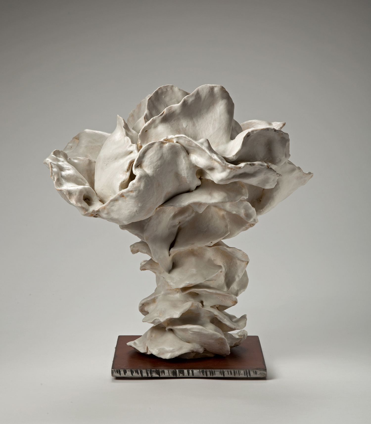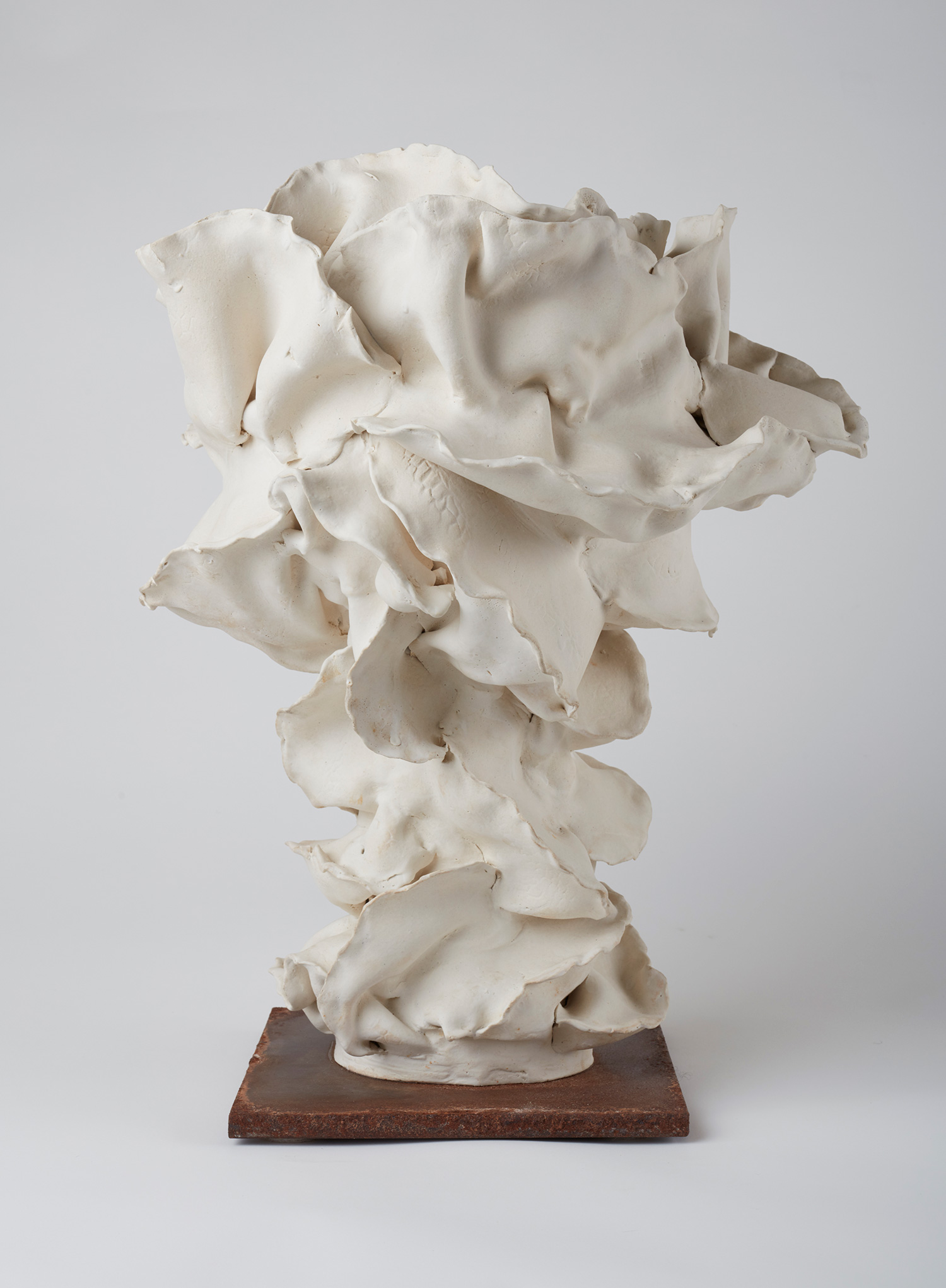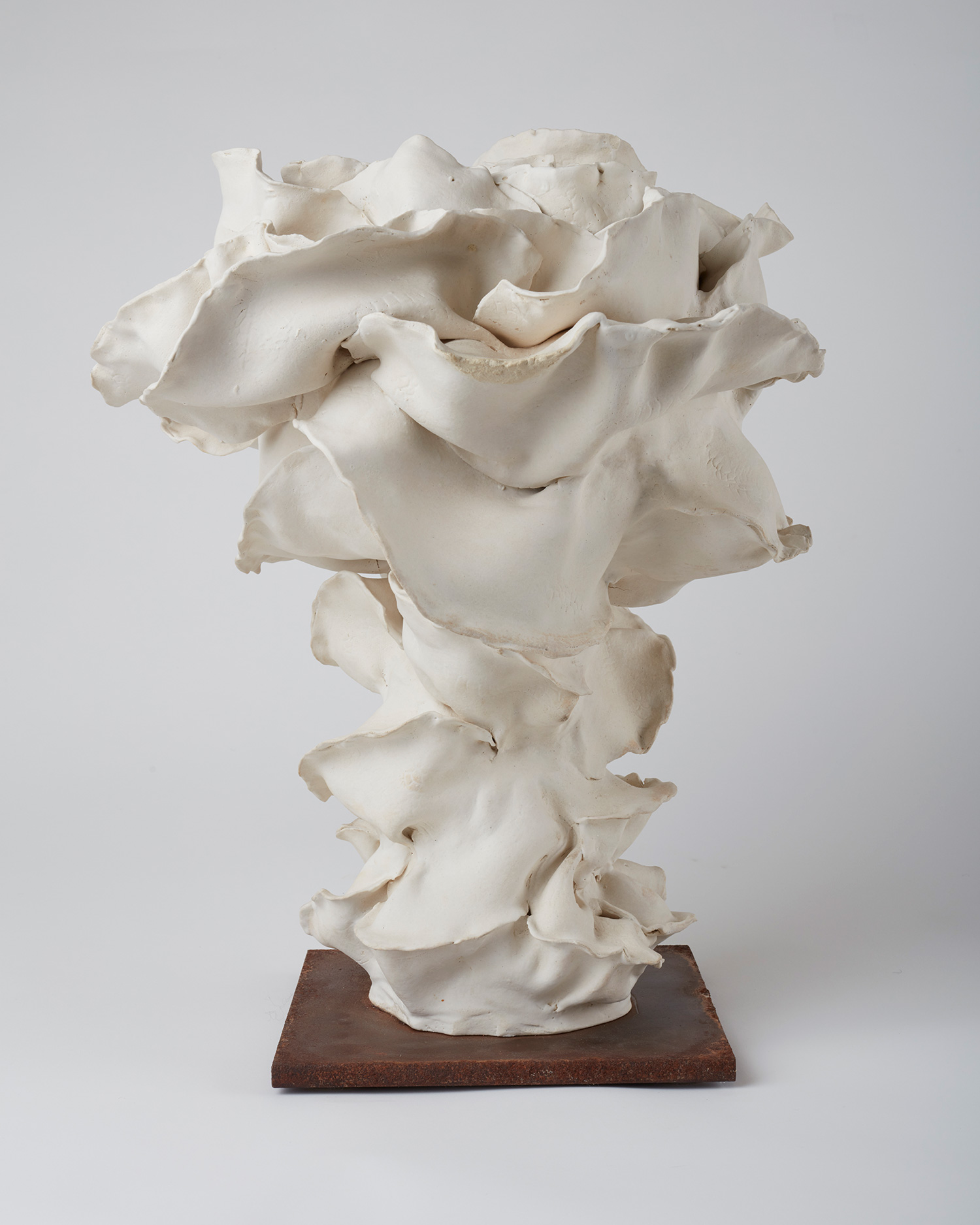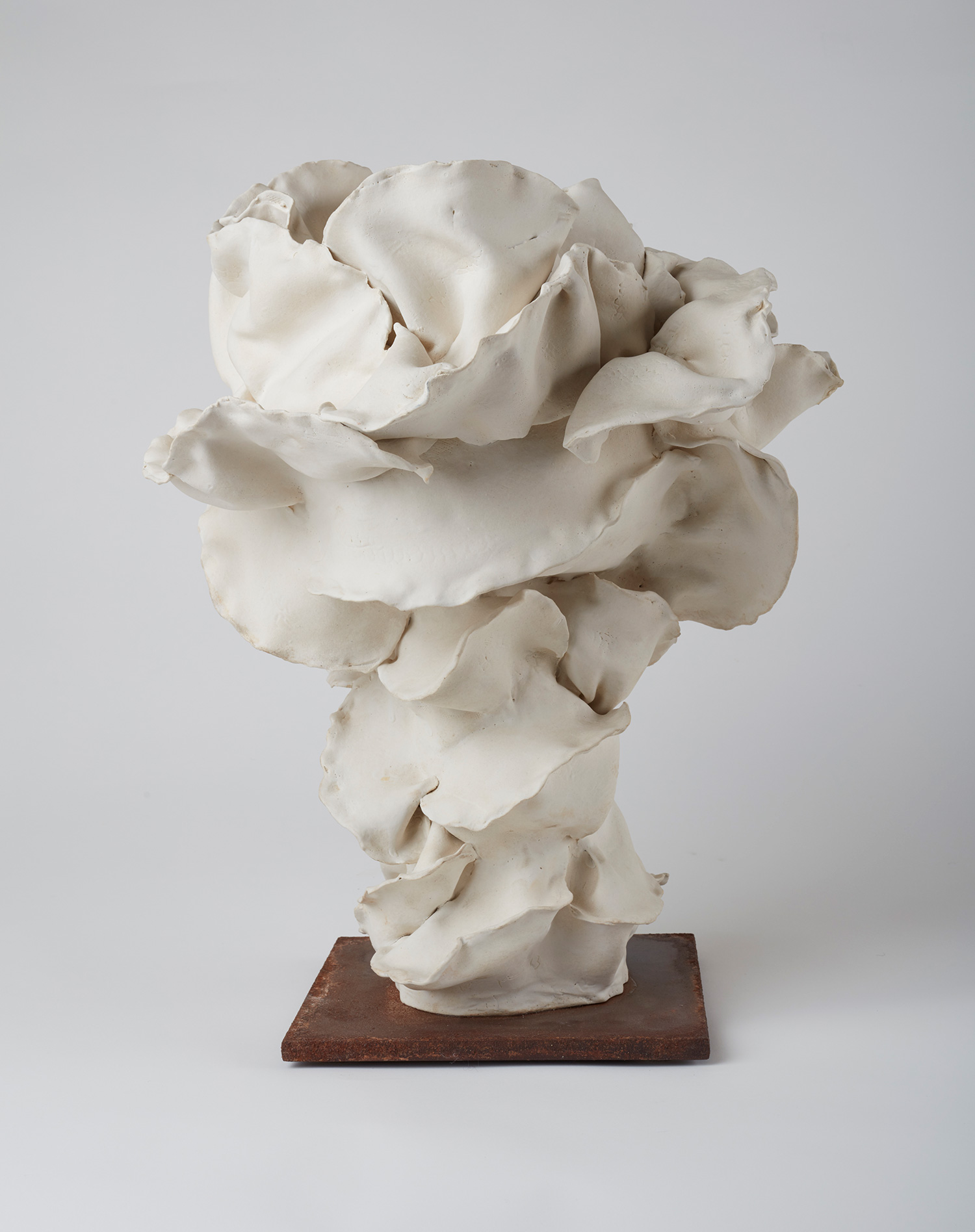 MUSHROOMS are hand-built in porcelain, high-fired, 50cm high approx..