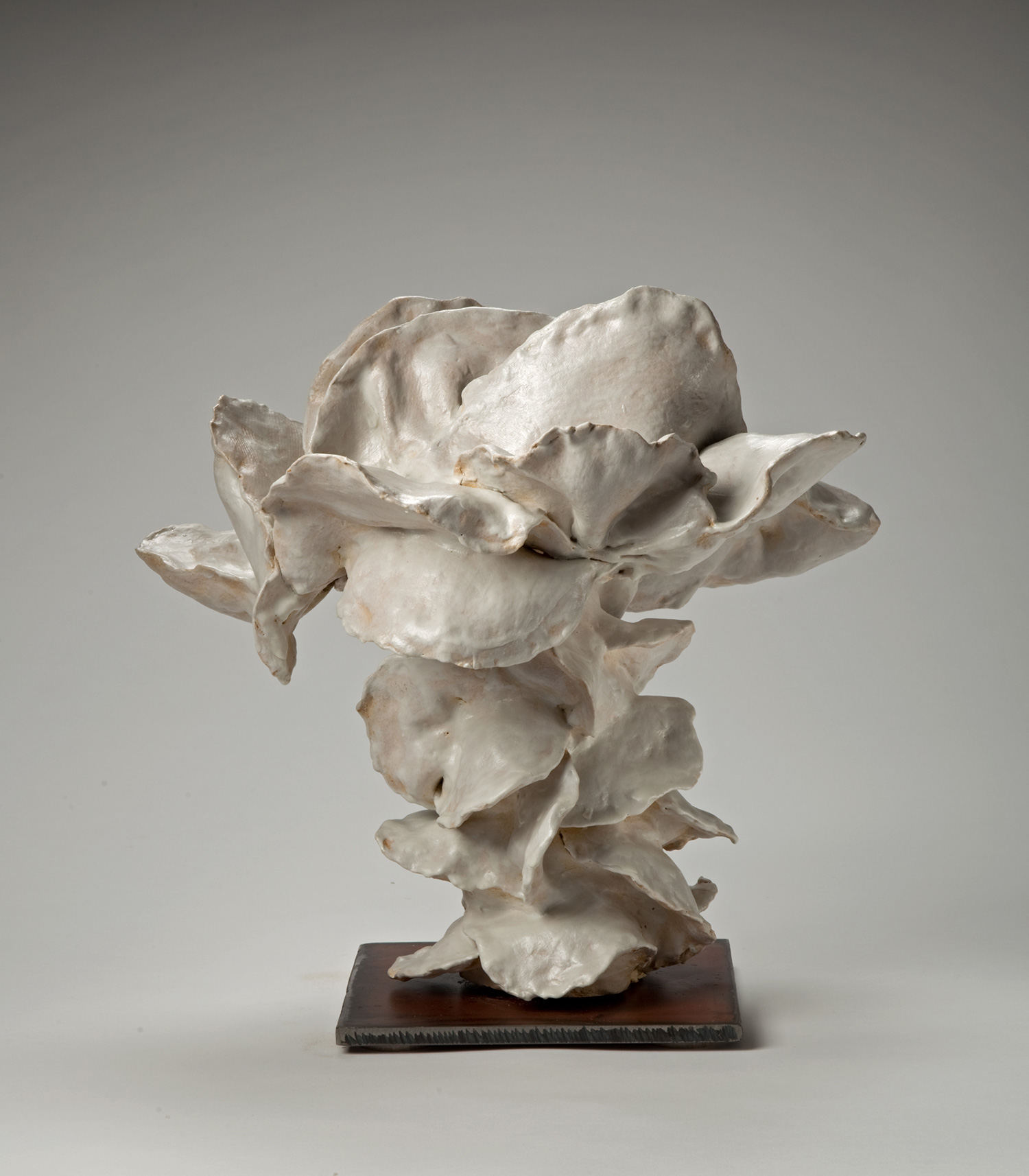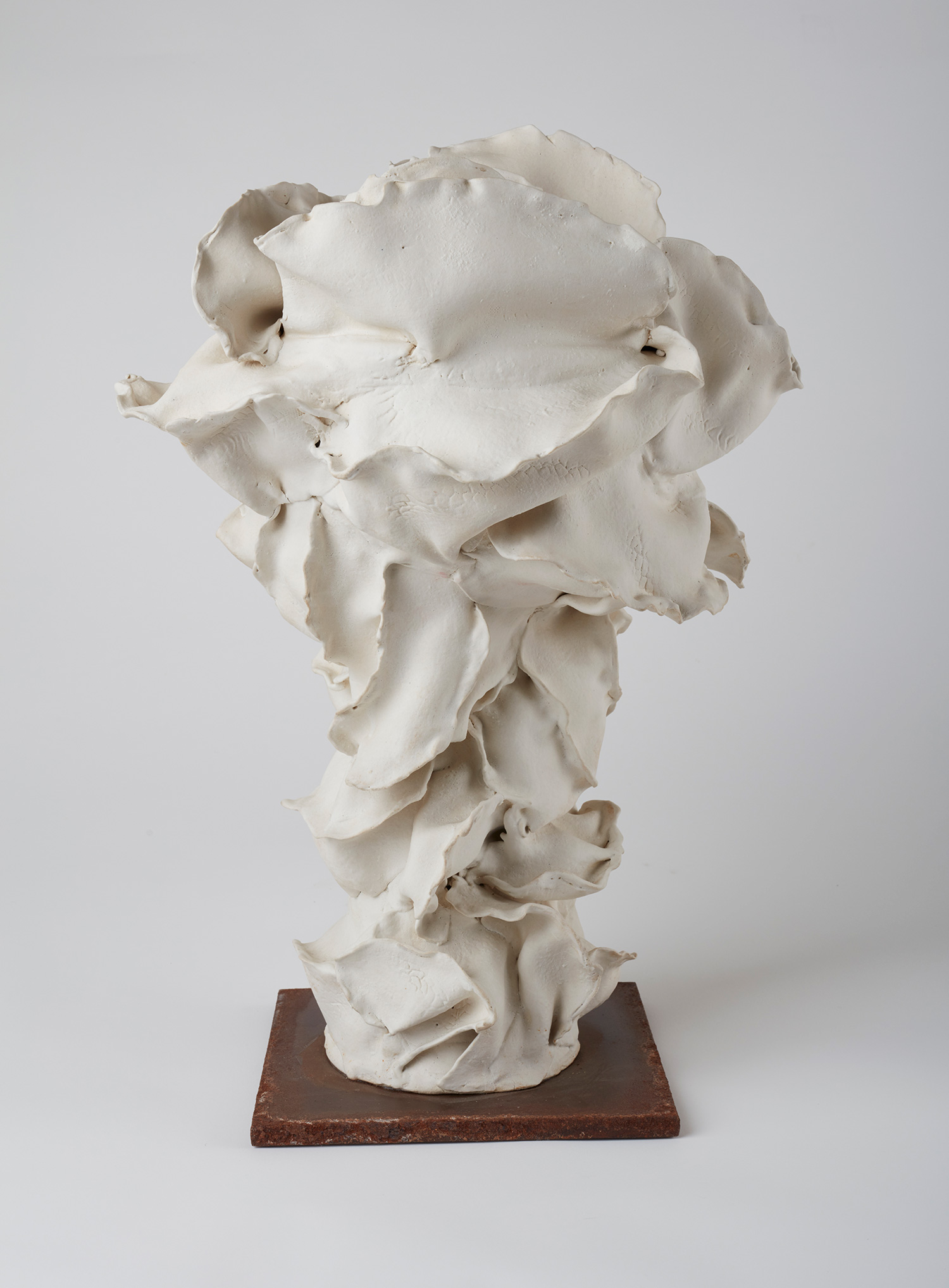 MUSHROOMS are hand-built in porcelain, high-fired, 50cm high approx..